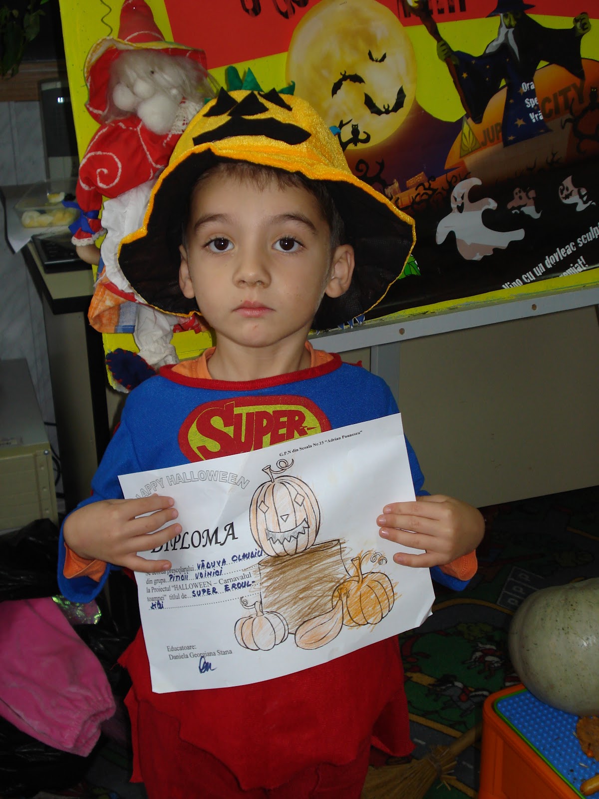 Piticii au sarbatorit si in acest an "Carnavalul toamnei", de Halloween. Desi nu este o sarbatoare traditionala a romanilor, Halloween ii incanta pe copii, pentru ca le ofera prilejul de a se costuma in personajele preferate si de a desfasura o activitate distractiva alaturi de colegi. Vrajitoare si supereroi au invadat Castelul Piticilor, iar Claunul ne-a animat petrecerea, cu dans si voie buna. Totul a fost condus, cu bucurie, de Vrajitoarea cea buna - doamna educatoare. Impreuna am dansat in jurul dovlecilor, urmand ca apoi sa intram in vacanta. Am avut ce povesti prietenilor si rudelor si am asteptat, cu nerabdare, sa vedem ce vom mai FACE LA GRADI.... pentru ca, in Castelul Piticilor, nicio zi nu seamana cu cealalta! Veniti de va convingeti!